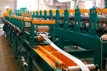 Главный узел прокатной линии. Формирует из гладкой полосы профиль нужной геометрии.